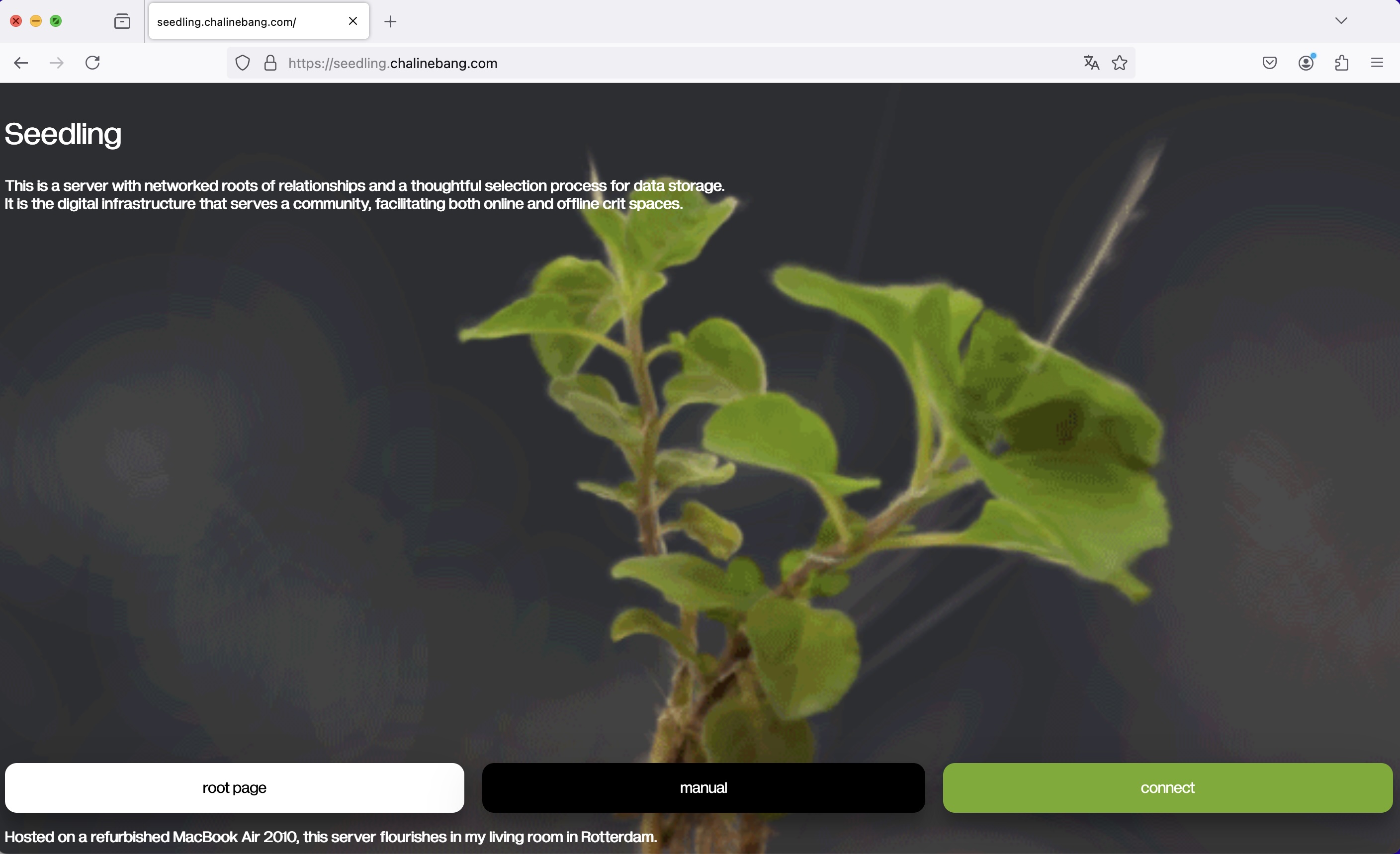 server, MacBook Air (2011 model),https://seedling.chalinebang.com/, video